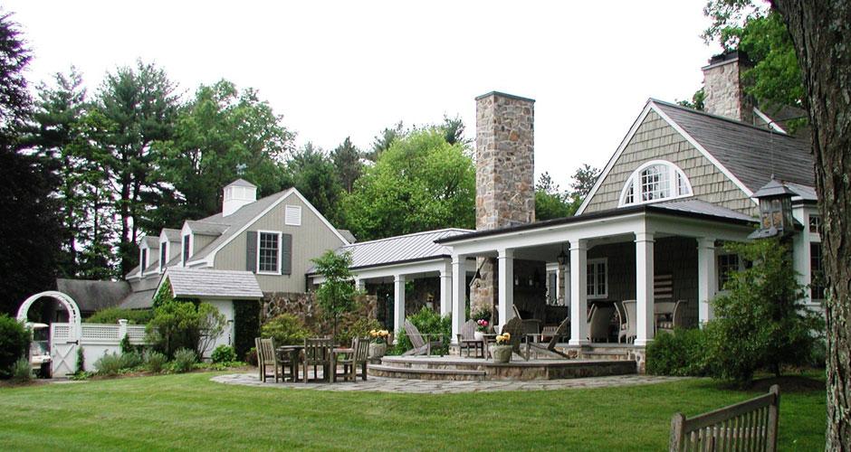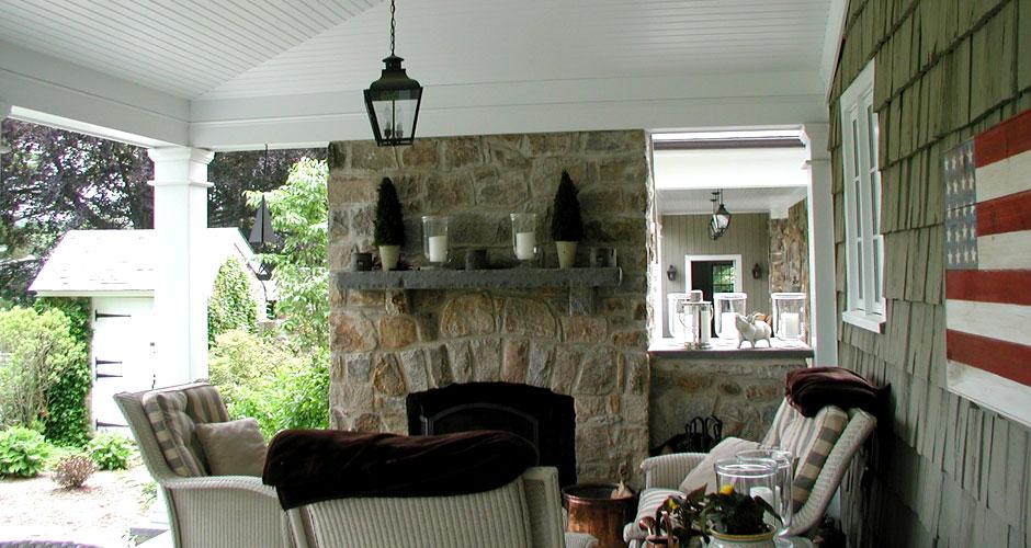 This beautiful historic home located in Mendham, NJ was built using long lasting, natural materials, such as stone walls and slate roofing. The renovations to the interior needed to reflect the history of the home, while the finishes used on the addition needed to match the existing historic materials. An outdoor fireplace extends the living area beyond the walls of the home and the covered porch extends outdoor living through all kinds of weather. The dramatic new kitchen, custom mantel and built-in bookcases all show case Phil Rochelle's attention to detail.